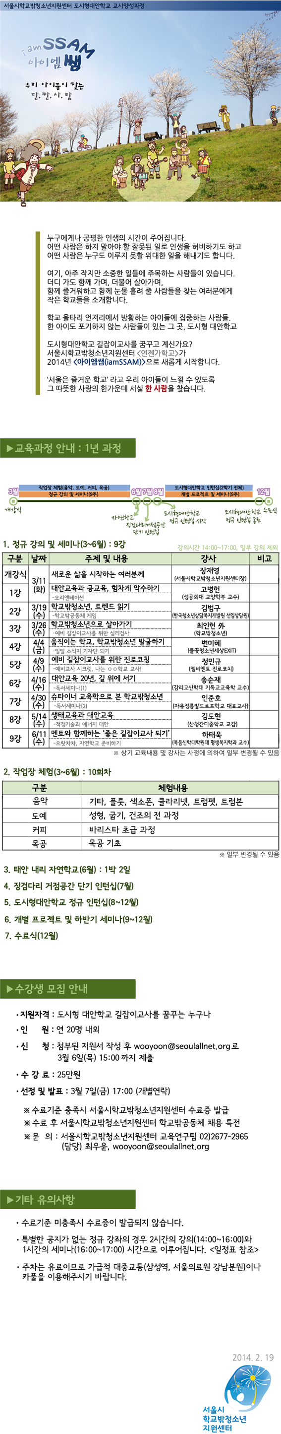 2014 도시형대안학교 교사양성과정 (I am ssam) 모집 공고