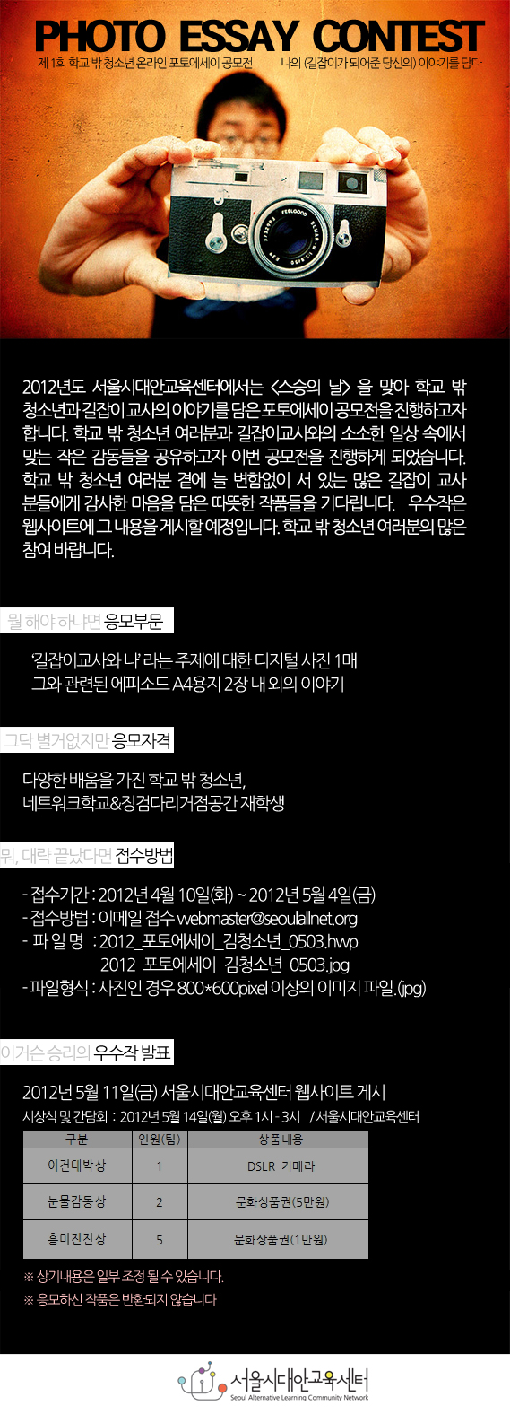 제 1회 학교 밖 청소년 온라인 포토에세이 공모전 "나의 이야기를 담다