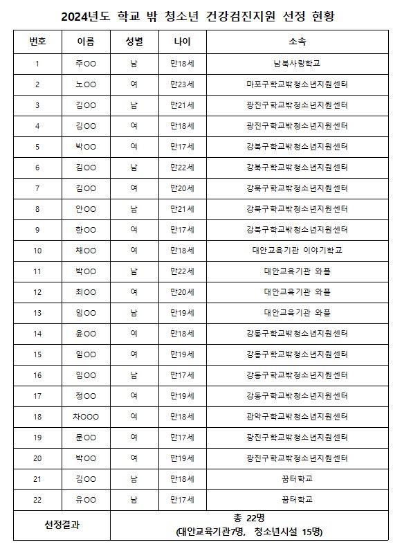 3. 개인정보를 제공받는 자 : 서울특별시, 서울특별시학교밖청소년지원센터, 만족도조사기관