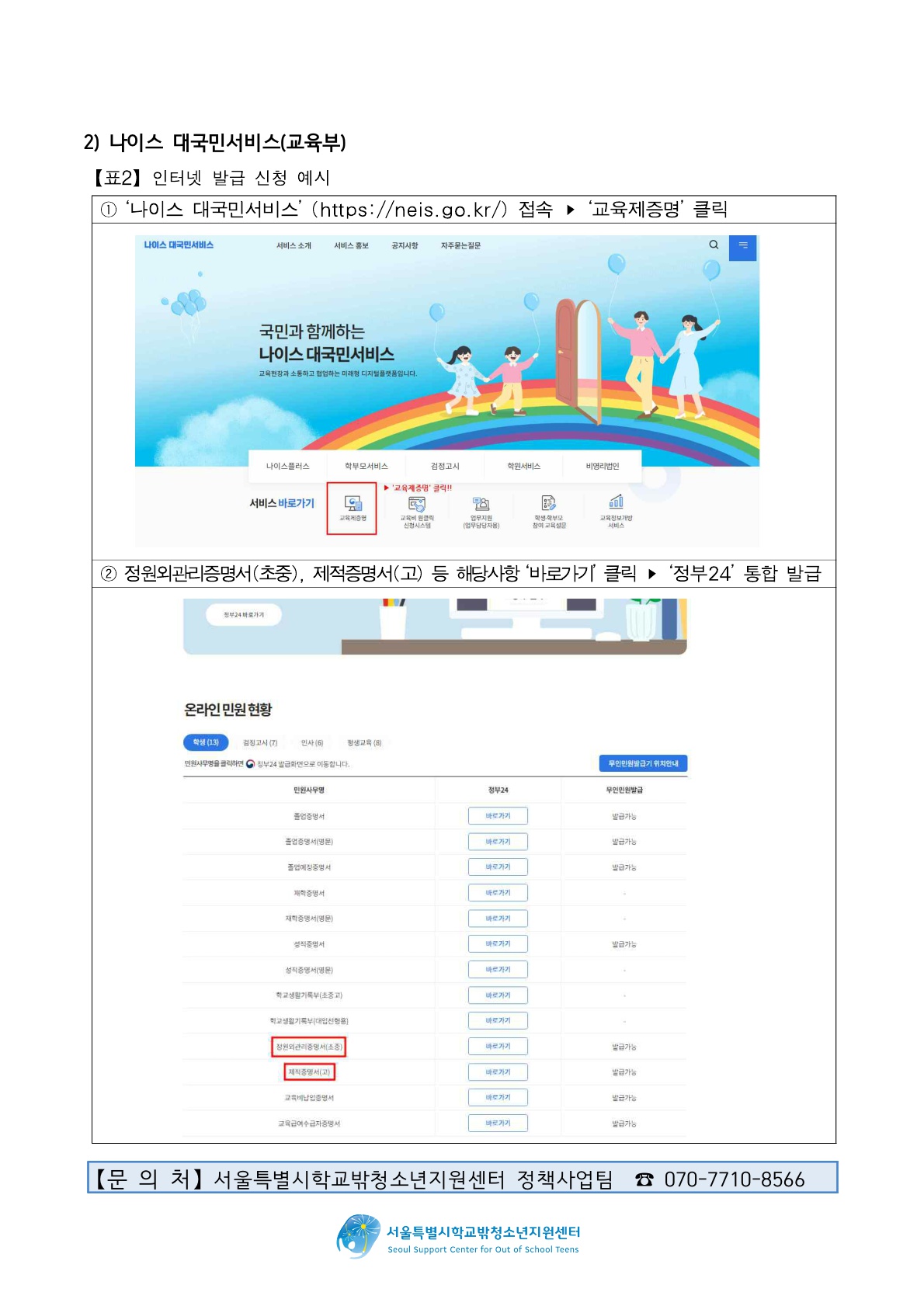 1. 개인정보의 이용 목적 : 학교 밖 청소년 지원 서비스 안내, 사업실적보고, 만족도조사
