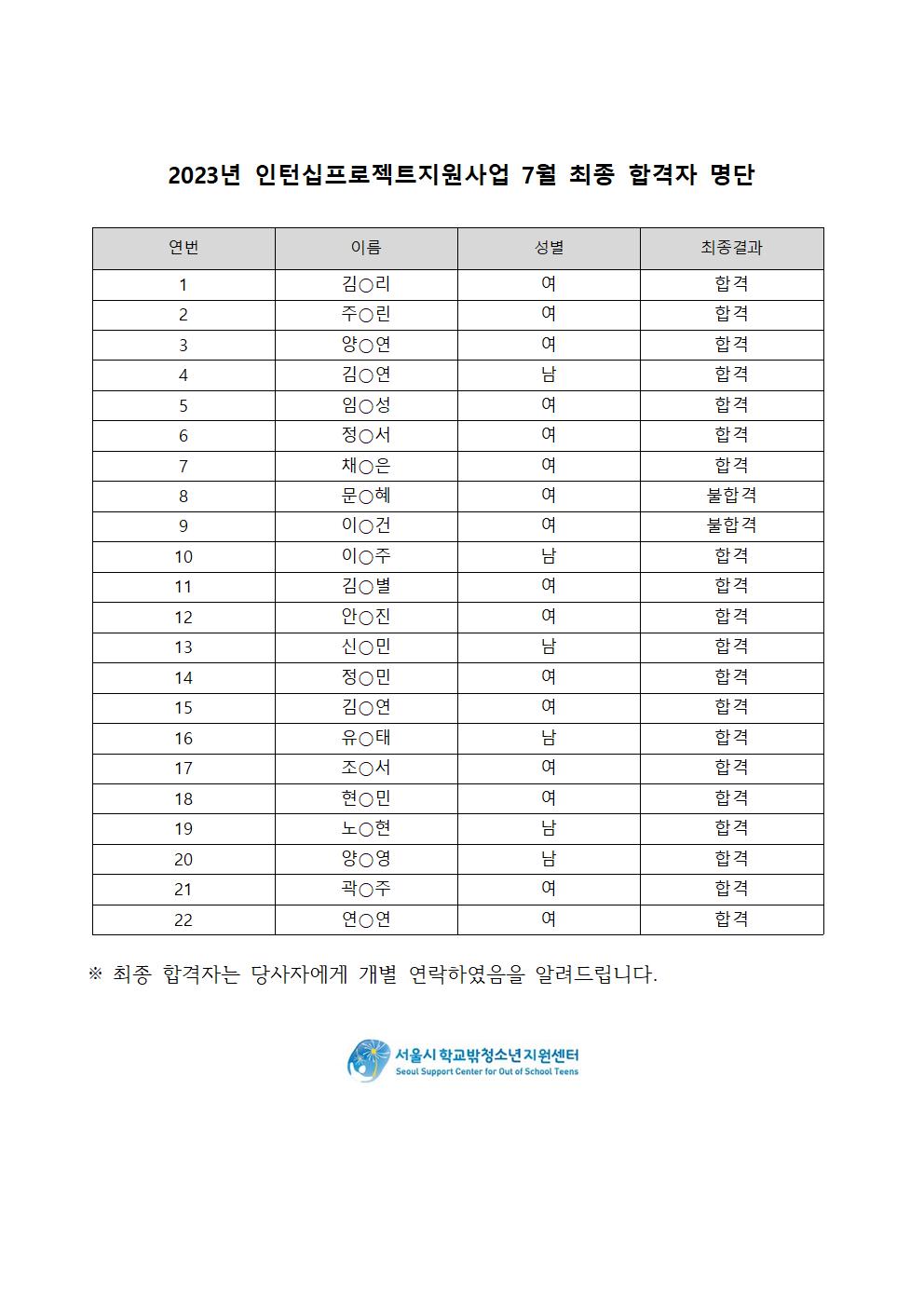 1. 개인정보의 이용 목적 : 학교 밖 청소년 지원 서비스 안내, 사업실적보고, 만족도조사