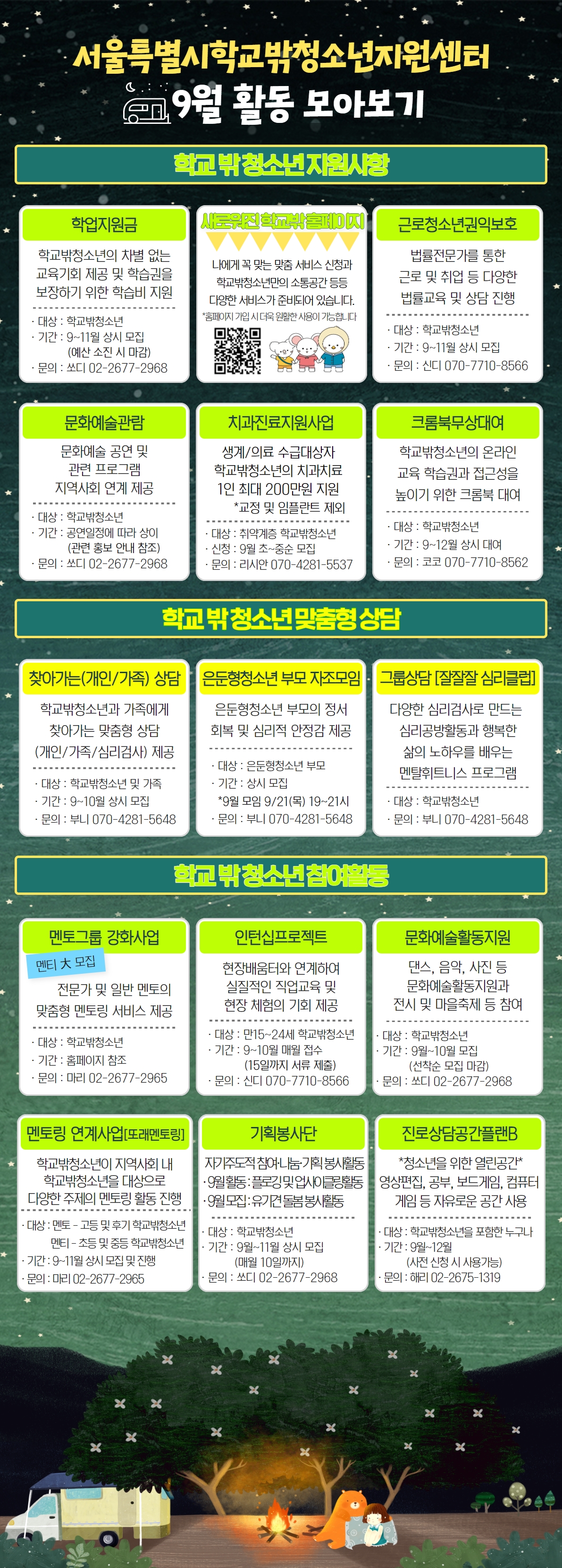 1. 개인정보의 이용 목적 : 학교 밖 청소년 지원 서비스 안내, 사업실적보고, 만족도조사