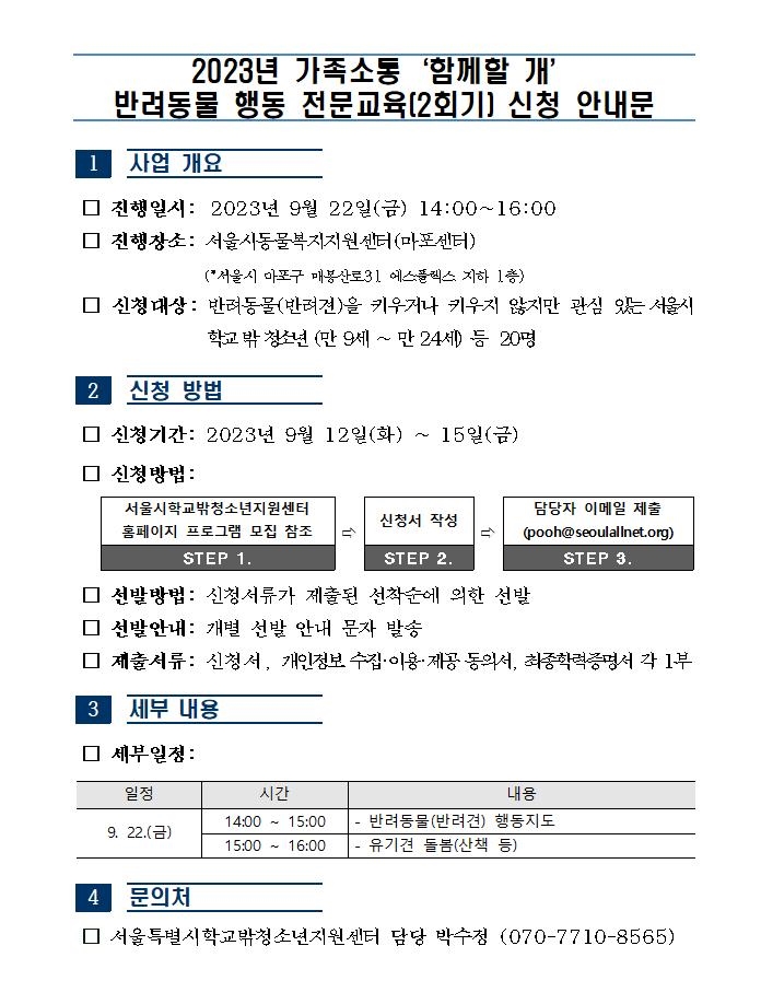 1. 개인정보의 이용 목적 : 학교 밖 청소년 지원 서비스 안내, 사업실적보고, 만족도조사