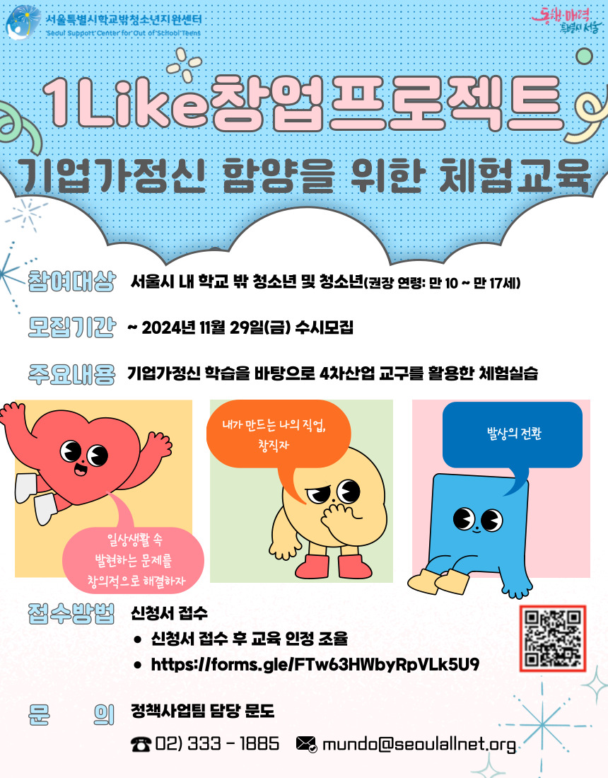 1. 개인정보의 이용 목적 : 학교 밖 청소년 지원 서비스 안내, 사업실적보고, 만족도조사