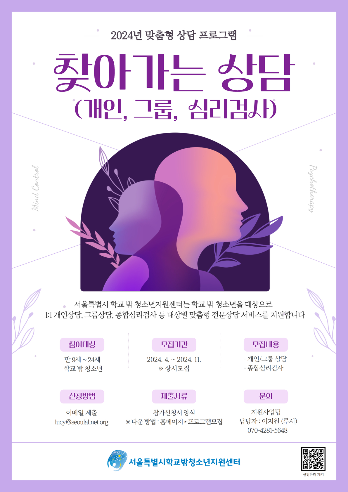 ■ 모집내용: 개인상담,그룹상담,종합심리검사