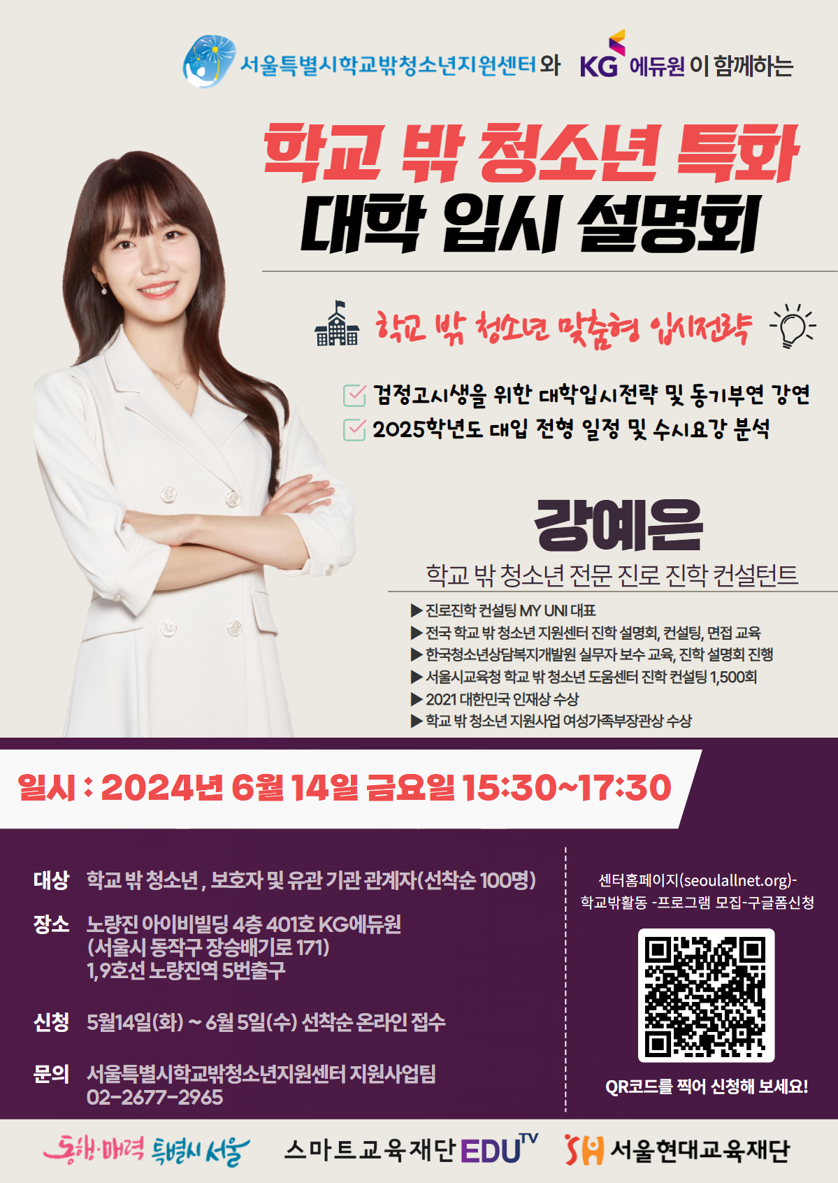 1. 개인정보의 이용 목적 : 학교 밖 청소년 지원 서비스 안내, 사업실적보고, 만족도조사