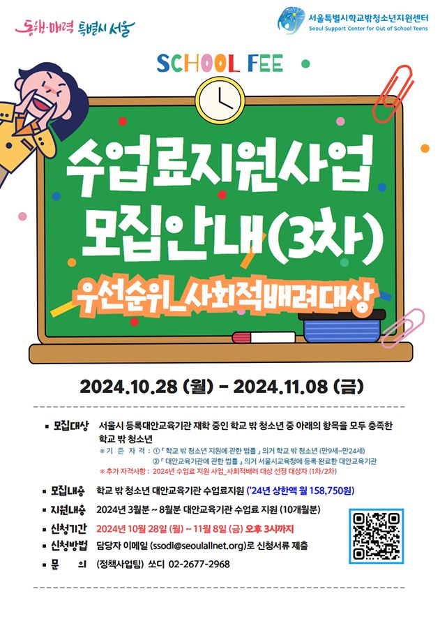 3. 개인정보를 제공받는 자 : 서울특별시, 서울특별시학교밖청소년지원센터, 만족도조사기관