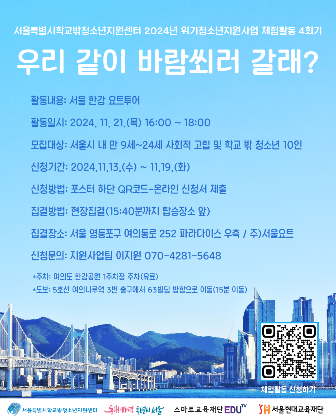 2024년 한강 요트투어 "우리 같이 바람쐬러 갈래?" 체험활동(4회기) 신청서 - Google Forms