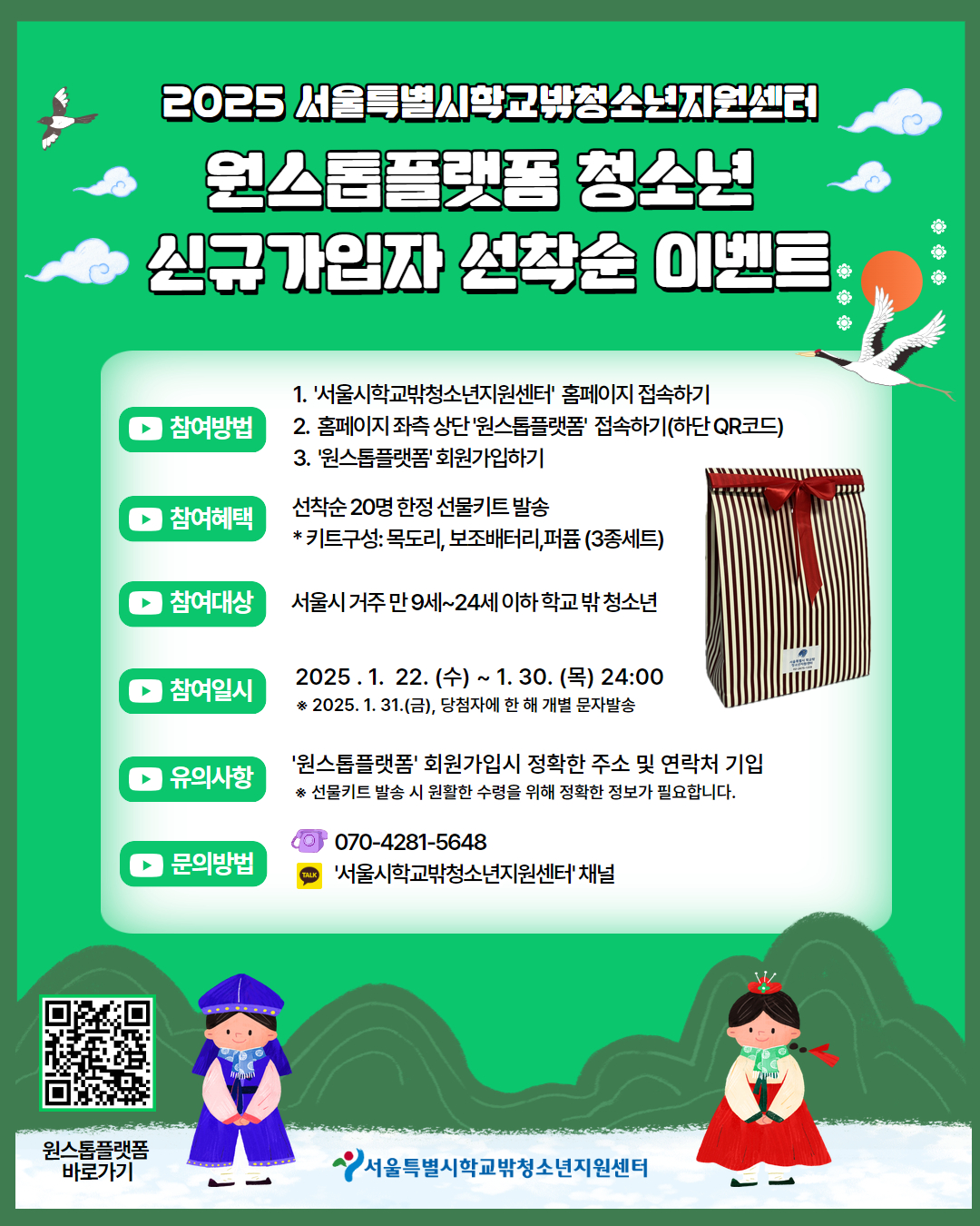 2025년, 설 맞이 원스톱플랫폼 청소년 신규가입자 대상으로 선착순 이벤트를 진행합니다.