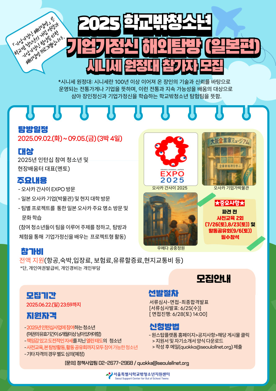 ※ 본 프로그램은2025년 인턴십 지원사업에 참여 중인 청소년만 지원 자격이 있습니다.