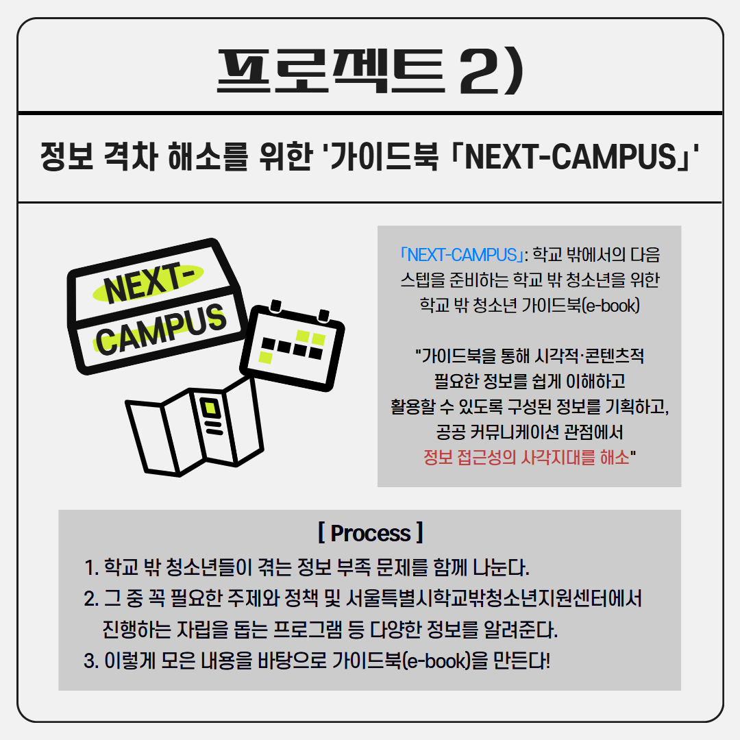 -학교 밖에서의 다음 스텝을 준비하는 학교 밖 청소년을 위한 학교 밖 청소년 가이드북(e-book) “NEXT-CAMPUS”를 제작